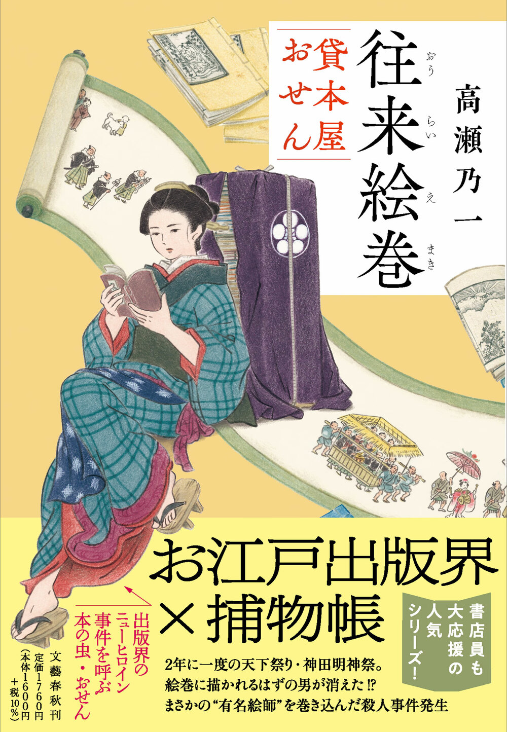 『貸本屋おせん』は、第100回「オール讀物新人賞」を満場一致で受賞した、高瀬乃一さんのデビュー作で、日本歴史時代作家協会賞の新人賞にも輝いています。文化年間の江戸浅草を舞台に、さまざまな事件に巻き込まれながら、好事家たちに本を届ける貸本屋の女主人・おせんの活躍が共感を呼び、続刊『往来絵巻 貸本屋おせん』とともに、大江戸ビブリオ捕物帳として注目を集めるシリーズとなっています。