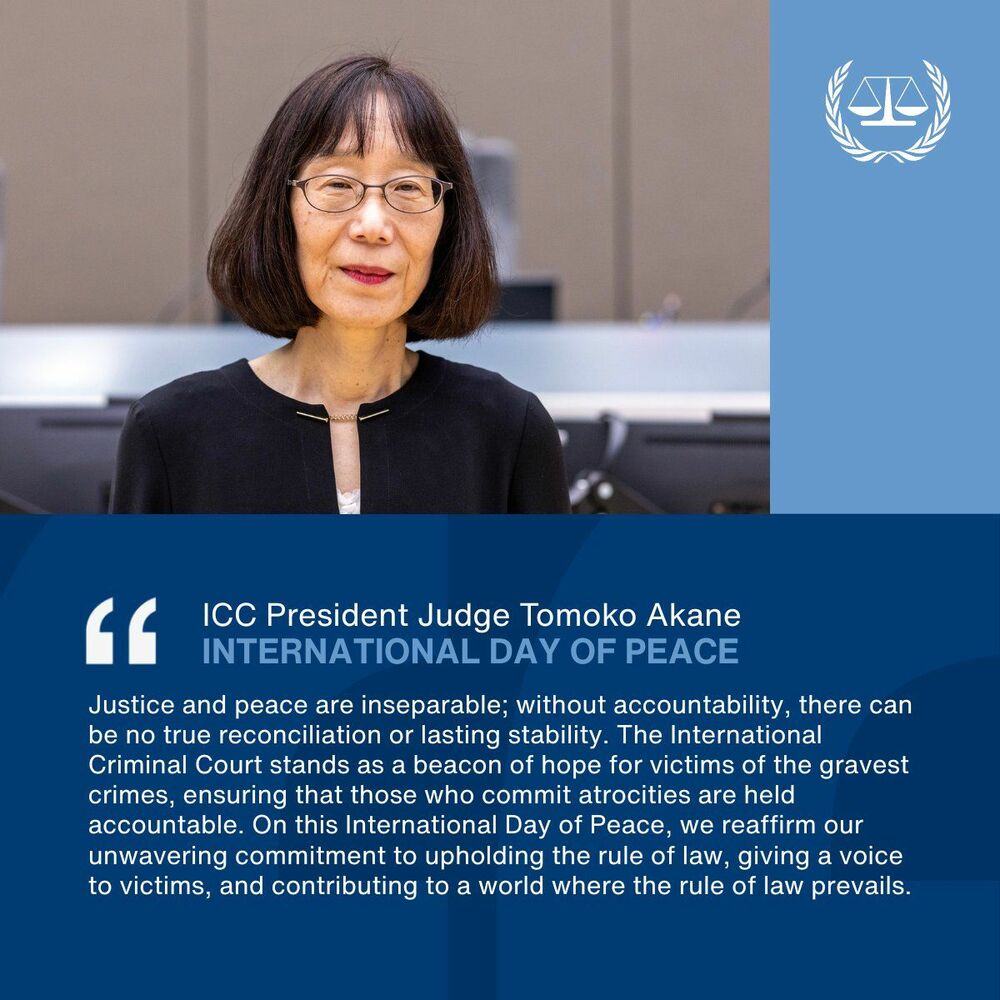 「責任追及なくして真の和解や永続的な安定はありません。ICCは、最も重大な犯罪の被害者にとって希望の光であり、残虐行為を犯した者には間違いなく責任を負わせなければなりません」と、赤根所長は「国際平和デー」(9月21日)でメッセージを発している。