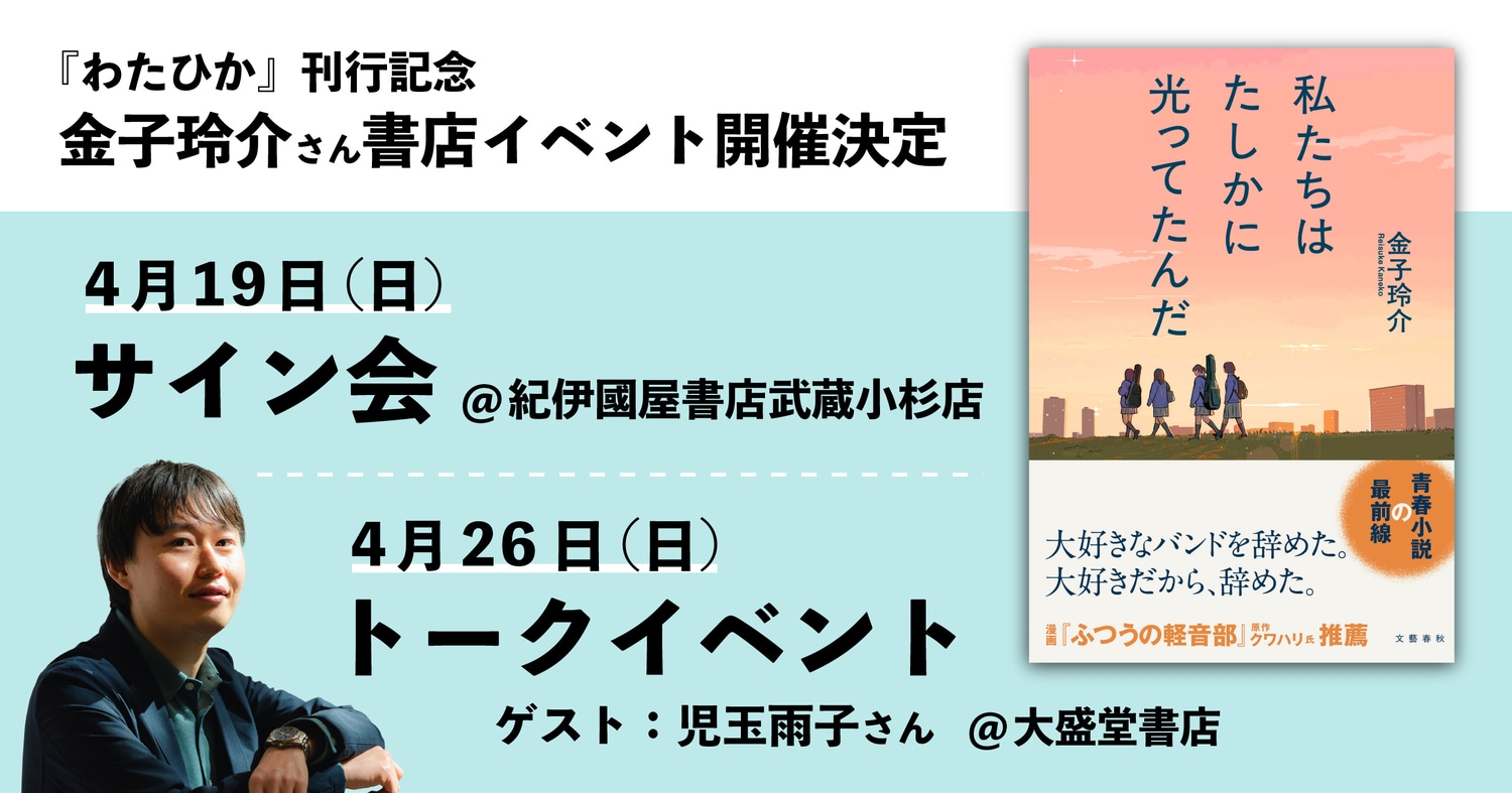 最新長編『私たちはたしかに光ってたんだ』が2026年4月9日に刊行される金子玲介さんの書店イベントが、2つ開催決定しました!