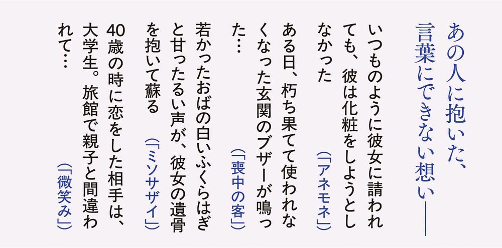 ――一篇一篇の物語がそれぞれに個性的で際立っていて、本当に面白いですものね。そして全編通して言えるのが、死の匂い、はかないものに対する不条理な想いが横溢している感じがします。